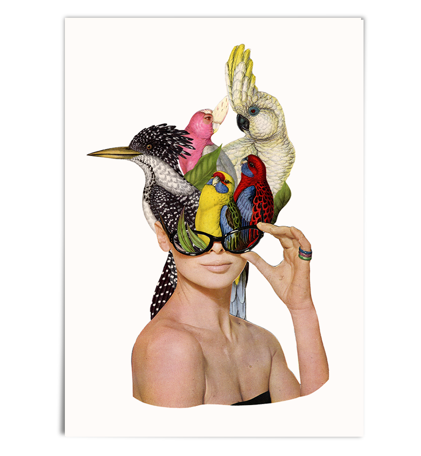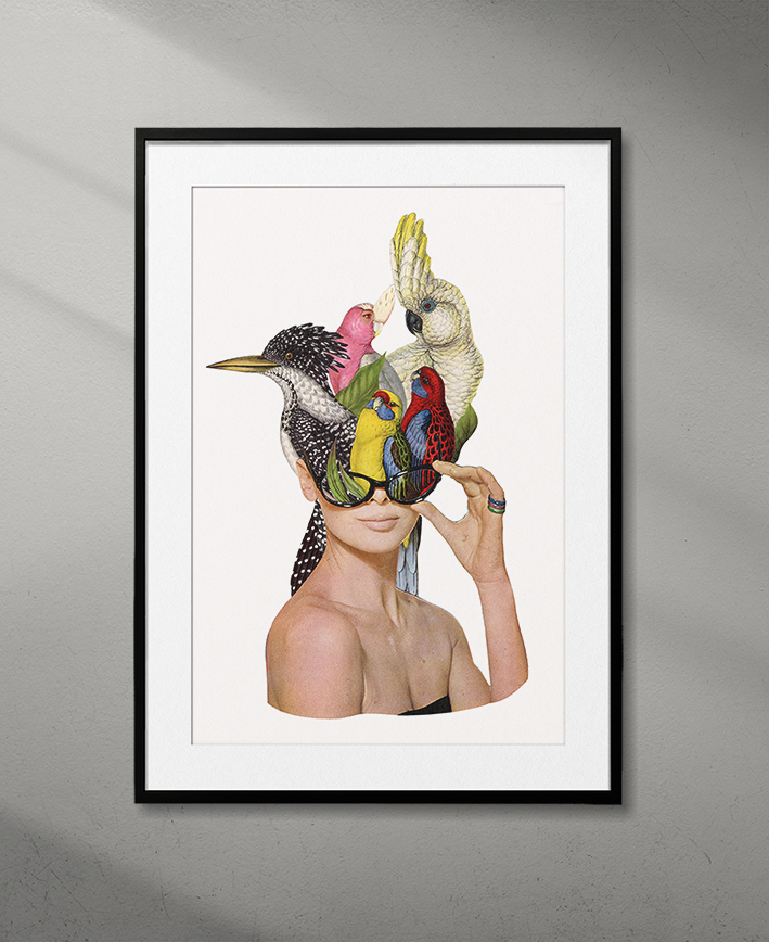 The collage is made using the traditional cut-and-paste collage technique with images from vintage magazines and recycled book illustrations. It is printed on high quality 180 g mat art paper and will be delivered with certificate authencity, signed and numbered.