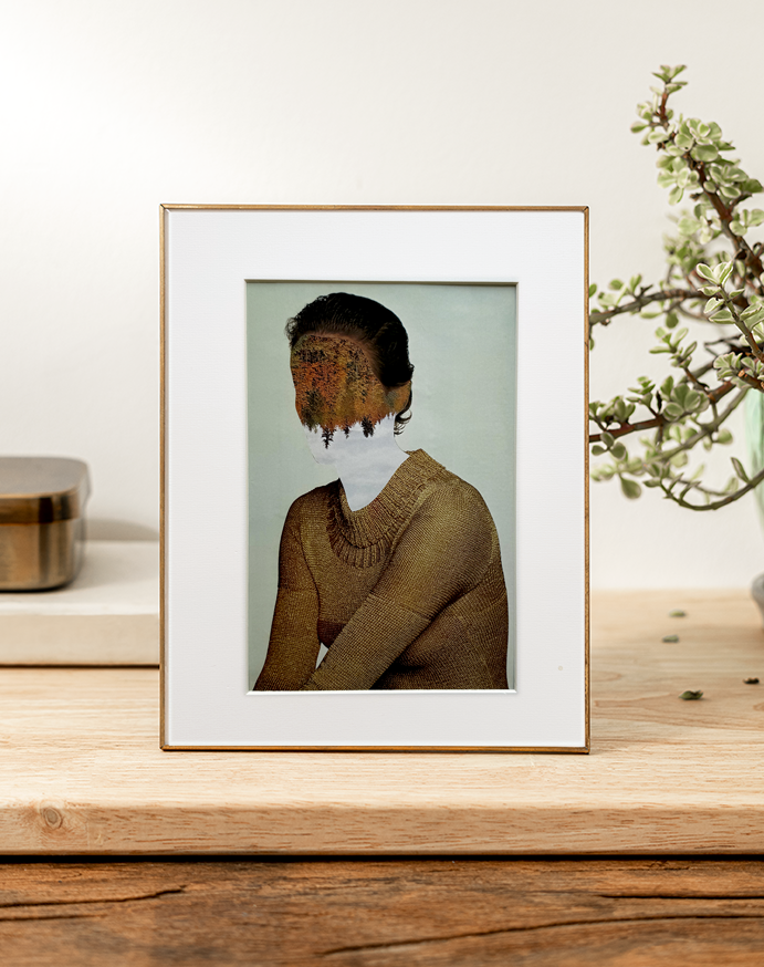 This collage is made using the traditional cut-and-paste collage technique with images from vintage magazines and recycled book illustrations. The piece is one-of-a-kind, a unique composition made from original old vintage materials.