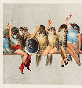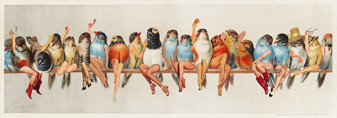 Hector Giacomelli’s Perch of Birds (1900) has inspired many artists — and I’ve long dreamed of creating my own version. These ladies are bold and loud. They’re here to overthrow the old, deranged men ruling the world and restore the order we deserve. Let the female revolution begin.