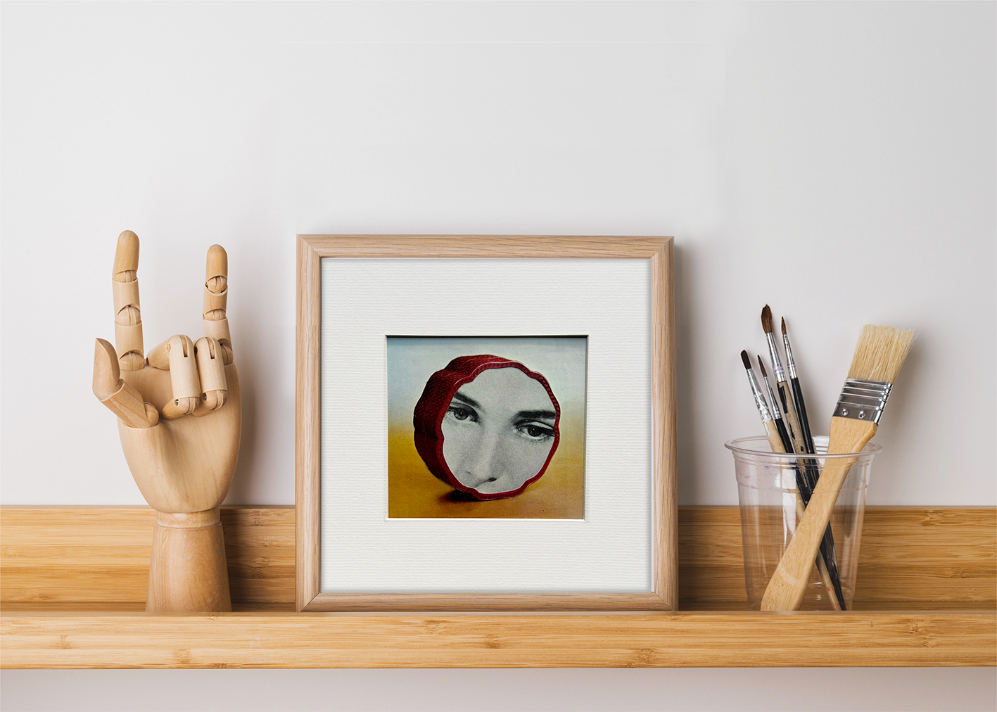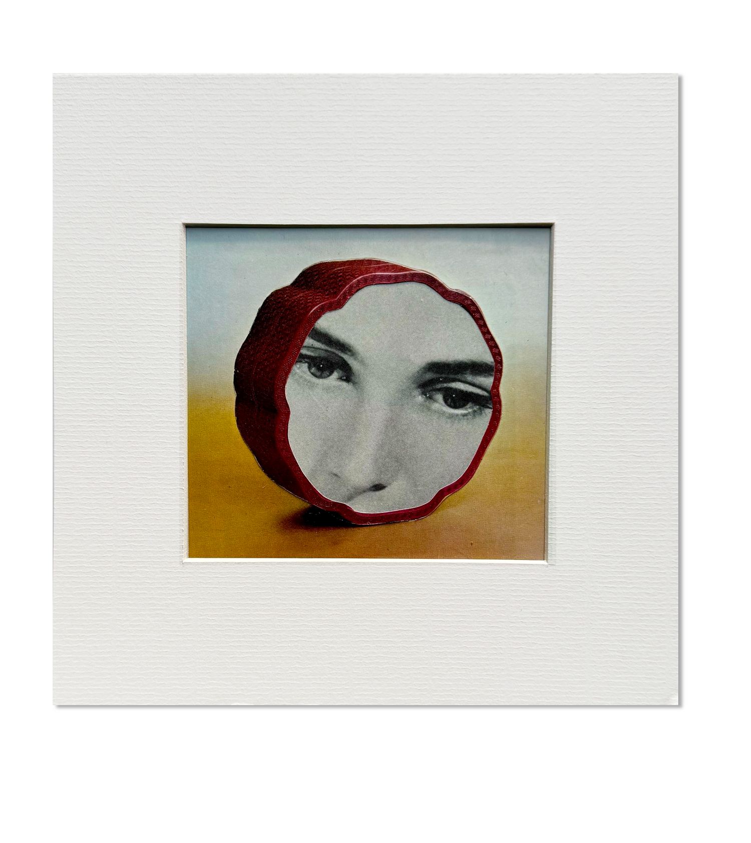 The collage is made using the traditional cut-and-paste collage technique with images from vintage magazines and recycled book illustrations.