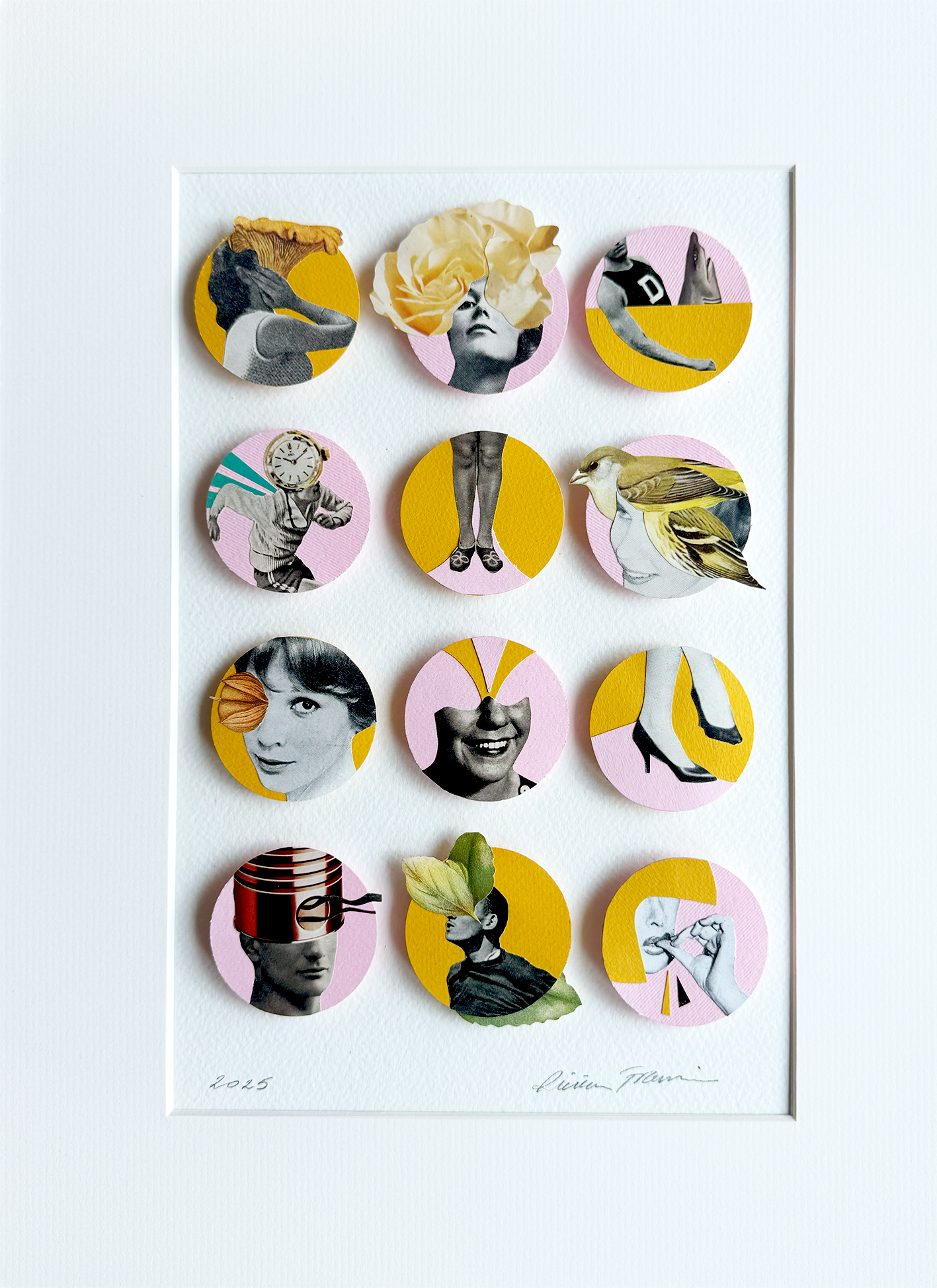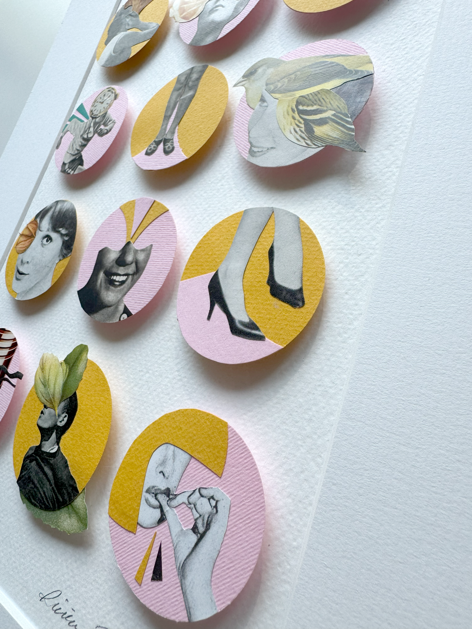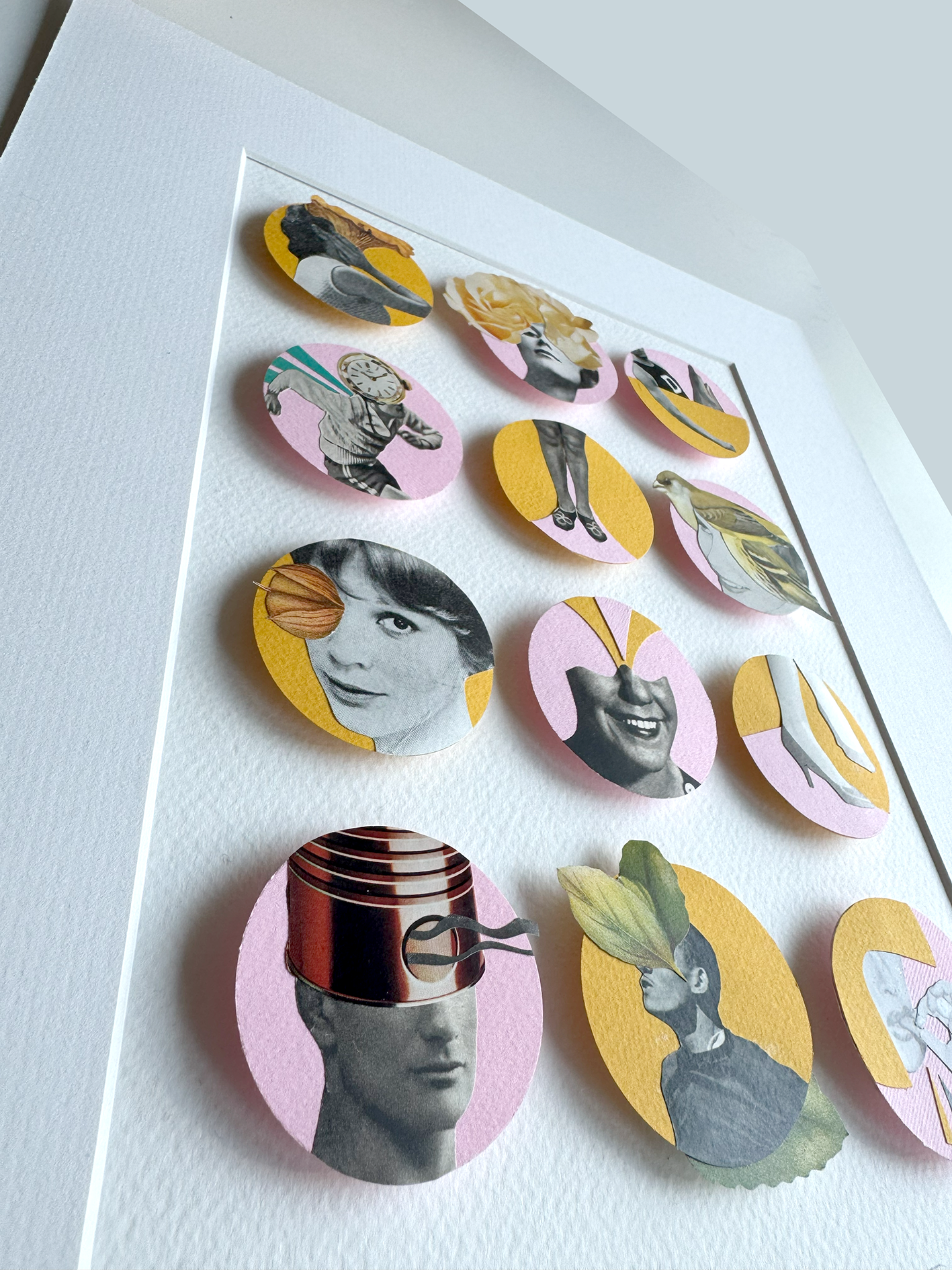 I Love Pop Art! In this collage I’m playing with pink and mustard yellow, plus bringing those classic Pop Art dots to life with a 3D twist.