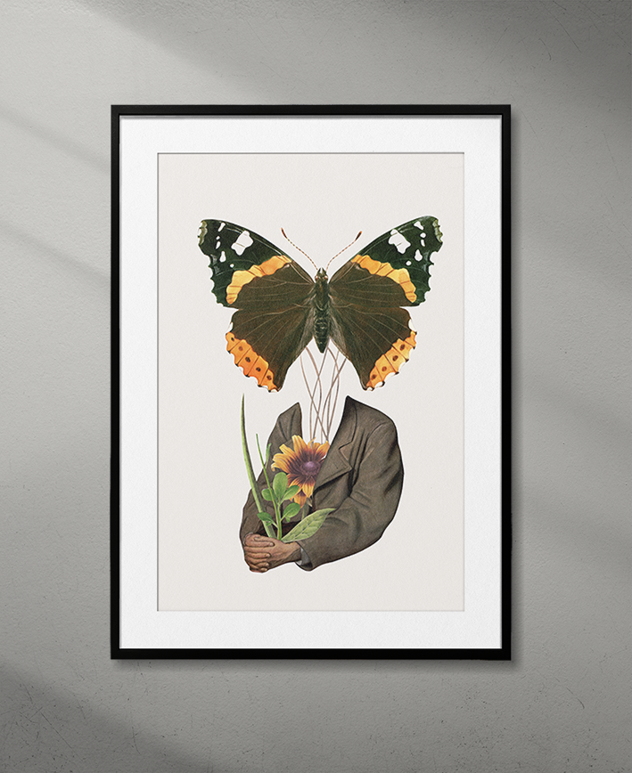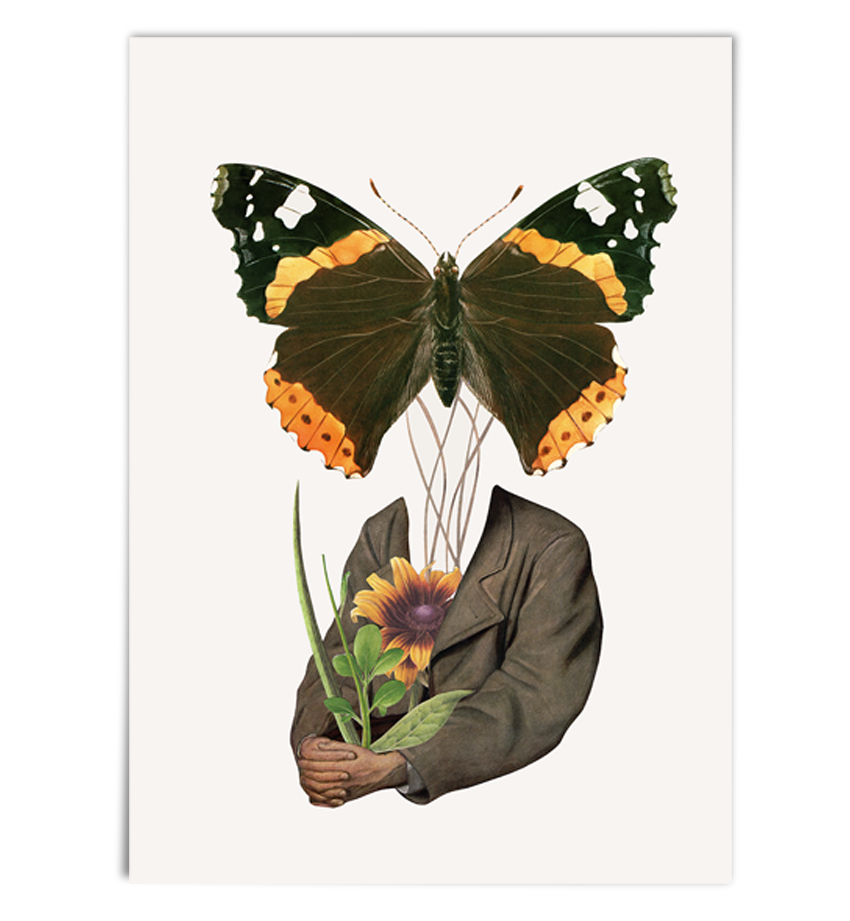 The collage is made using the traditional cut-and-paste collage technique with images from vintage magazines and recycled book illustrations. It is printed on high quality 180 g mat art paper and will be delivered with certificate authencity, signed and numbered.